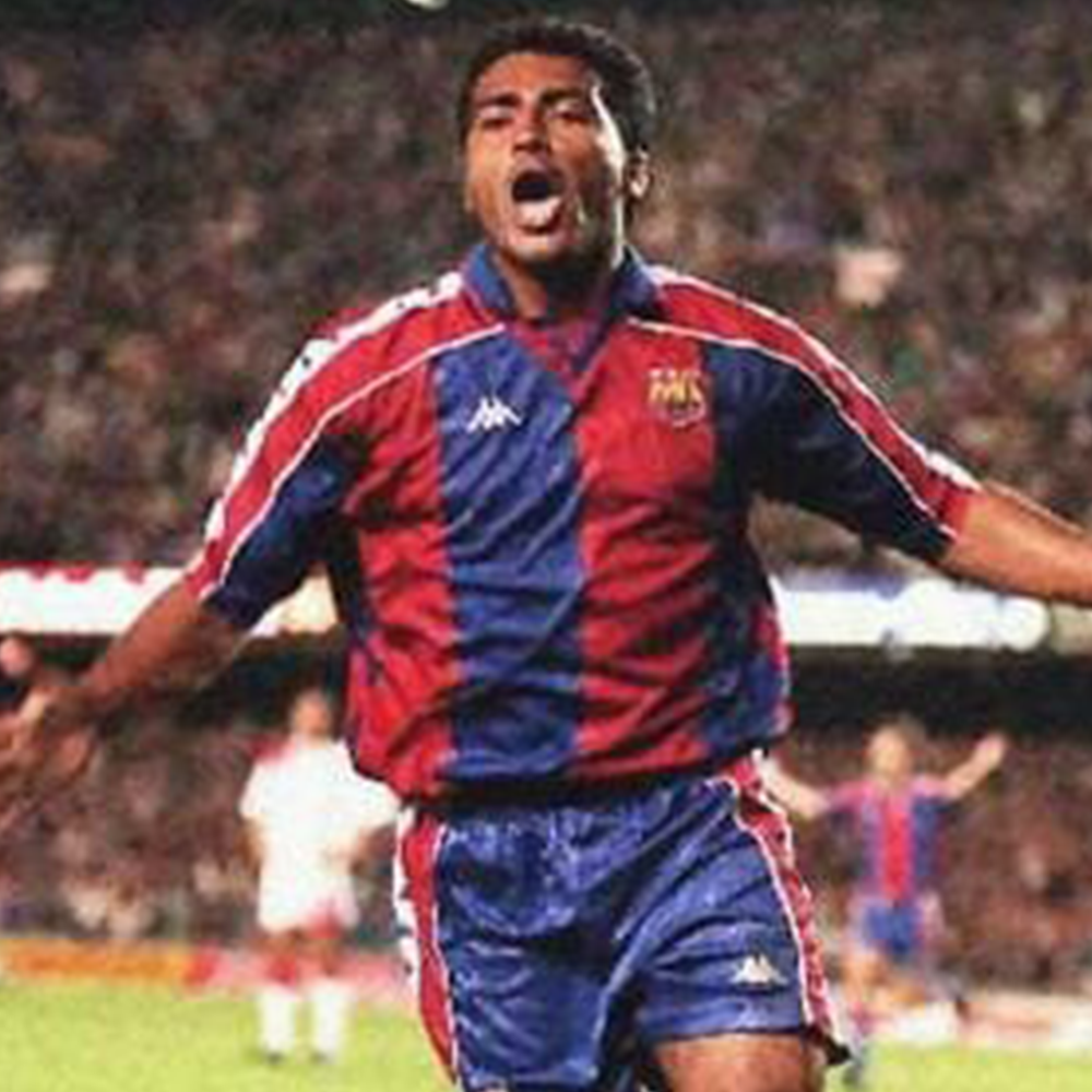 Ídolo eterno do Barça, Romário brilhou entre 1993 e 1995, conquistando o título do Campeonato Espanhol de 1994, sendo artilheiro de La Liga e autor de gols inesquecíveis, como os três na vitória histórica por 5x0 contra o Real Madrid. Sua passagem marcou para sempre a história do clube catalão.