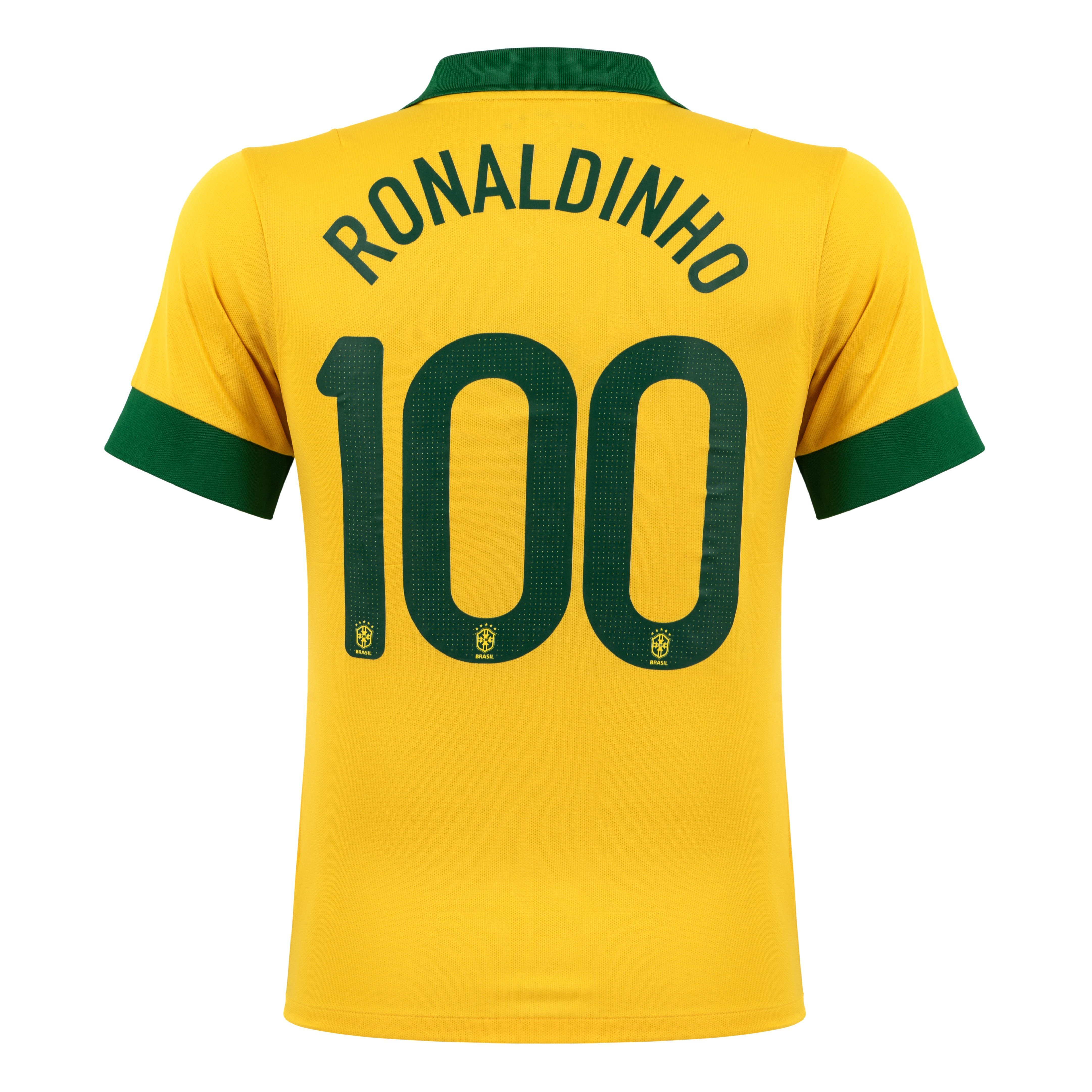 Garanta essa oportunidade única de ter em sua coleção uma camisa original da Seleção Brasileira 2013, personalizada RONALDINHO 100 e autografada por um dos maiores ídolos do futebol mundial.