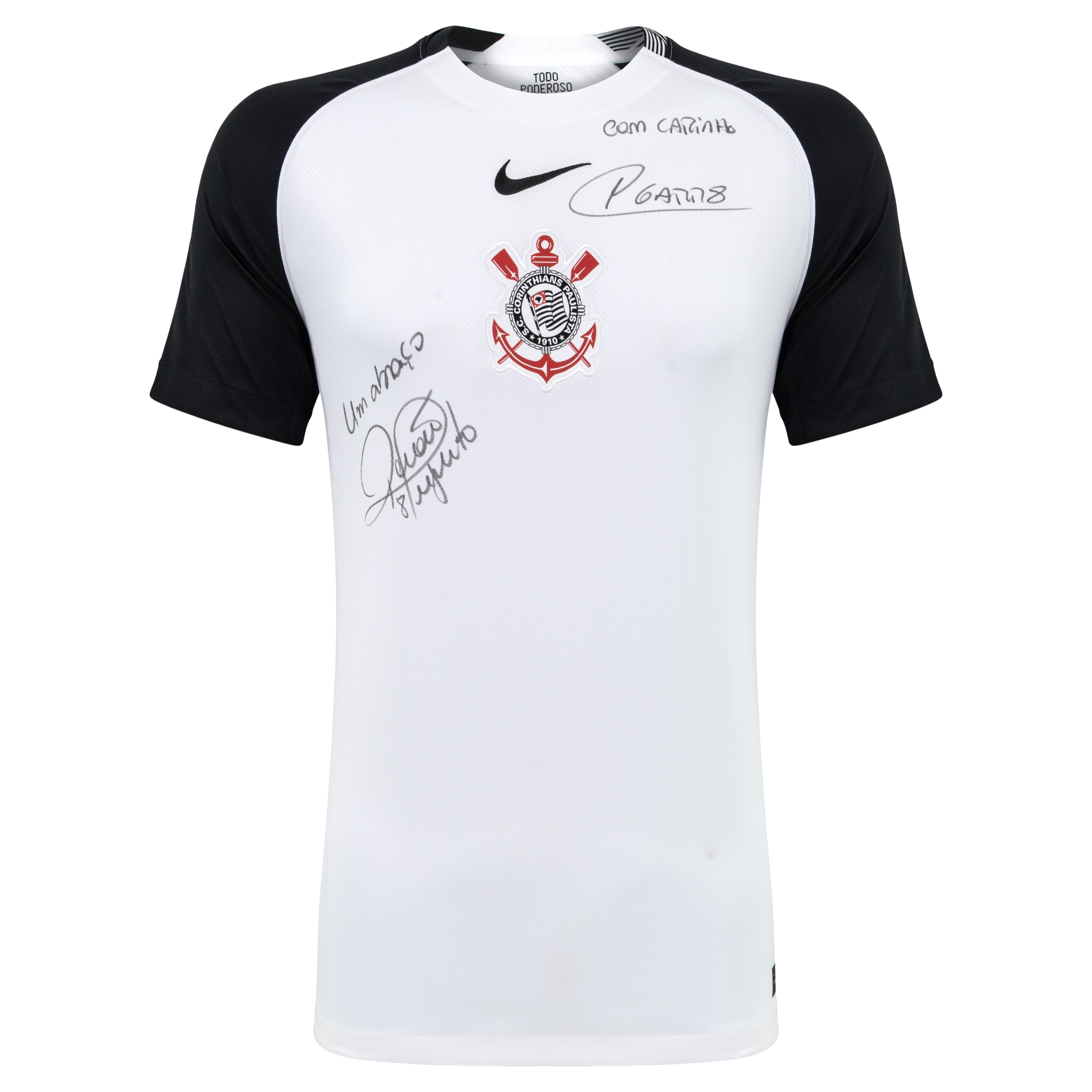 Garanta a oportunidade de ter na sua coleção uma camisa histórica do Corinthians, autografada por Renato Augusto e Rodrigo Garro.